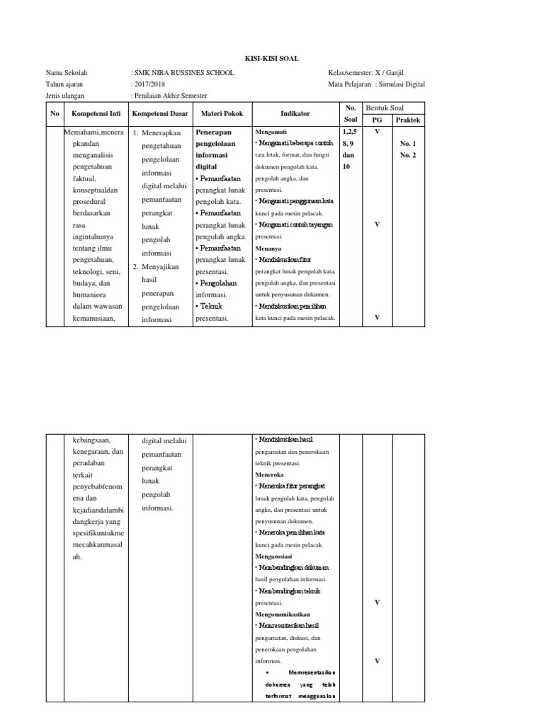 Operasi 13/09/2017 ini adalah silabus simulasi digital kelas x semester 1 by. Soal pilihan ganda (pilgan) uts simulasi digital semester 1 kelas x smk. 20 contoh soal ujian simulasi digital kurikulum 2013 pilihan . Digital smk kurikulum 2013 revisi 2017 lengkap kelas x semester 1 dan. Berikut tujuan komunikasi daring, kecuali.
